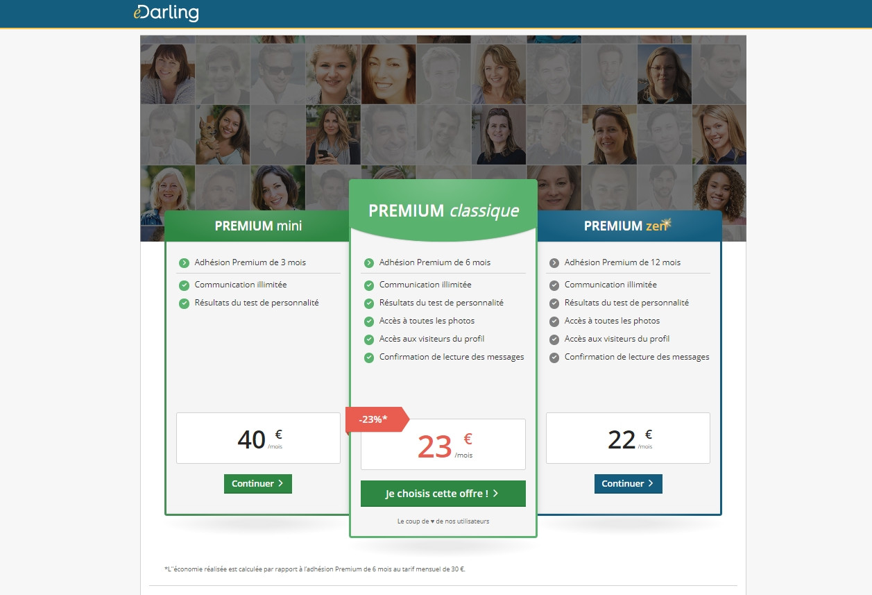 Le prix eDarling n’est pas forcément à la porte de toutes les bourses, mais il est en corrélation avec le standing du site et la clientèle ciblée.