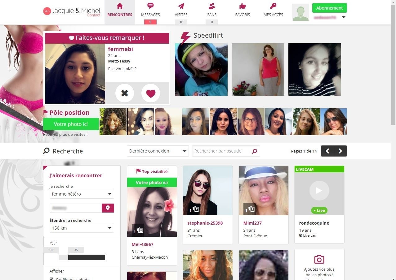Dès notre arrivée sur la page d’accueil du site Jacquie et Michel contact, on a su ce qui nous attendait. En effet, la mosaïque de photos de femmes en positions suggestives et plus ou moins habillées ne laisse pas beaucoup de place au doute quant à l’objectif de ce site de rencontre. On doit bien avouer que ça donne envie.