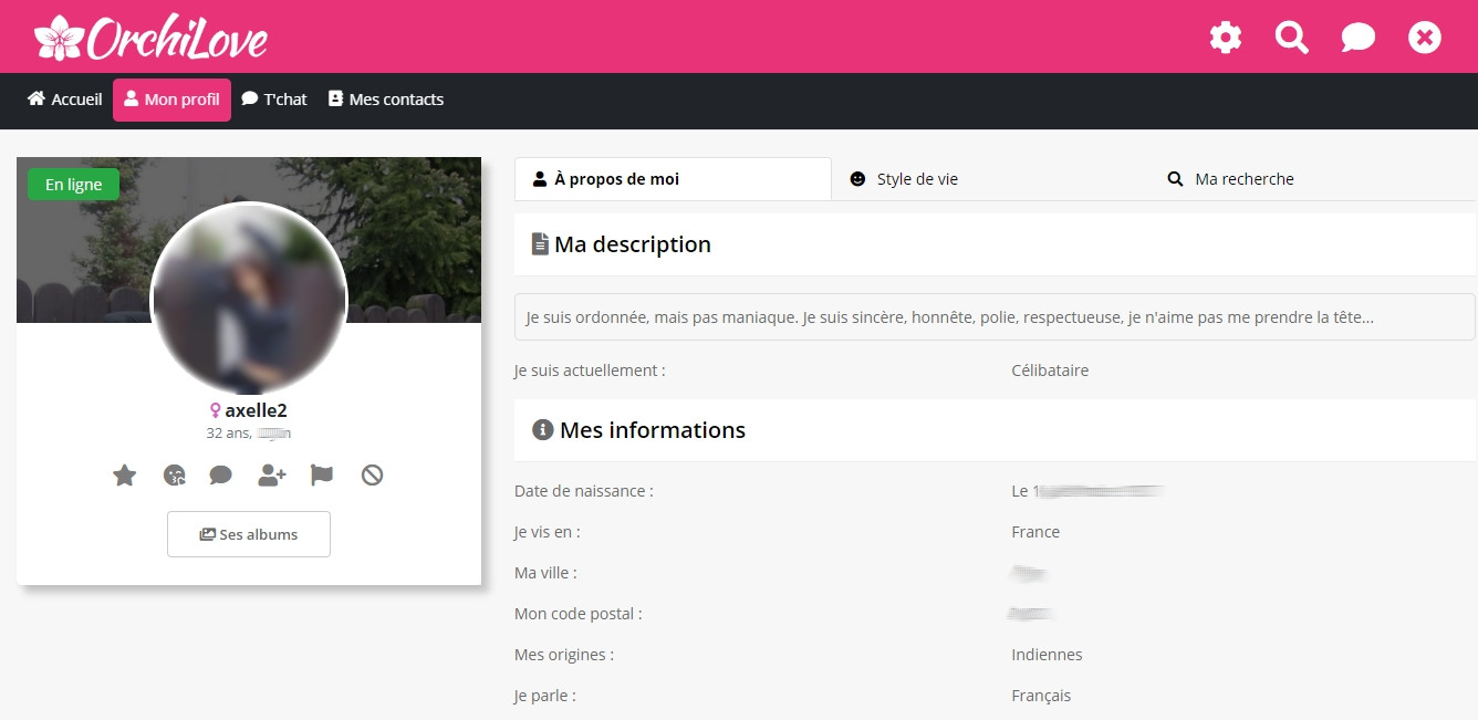 Face à la simplicité du site, j’étais dubitative sur son efficacité. On a tendance à croire que plus le site est sérieux, plus il doit offrir des services complexes. Je suis contente de m’être trompée, car en plus d’être ultra facile à utiliser, il est efficace. J’ai rencontré un homme avec lequel j’ai eu une relation de courte durée, mais je suis depuis quelque temps avec une personne tout à fait spéciale grâce à Orchilove.