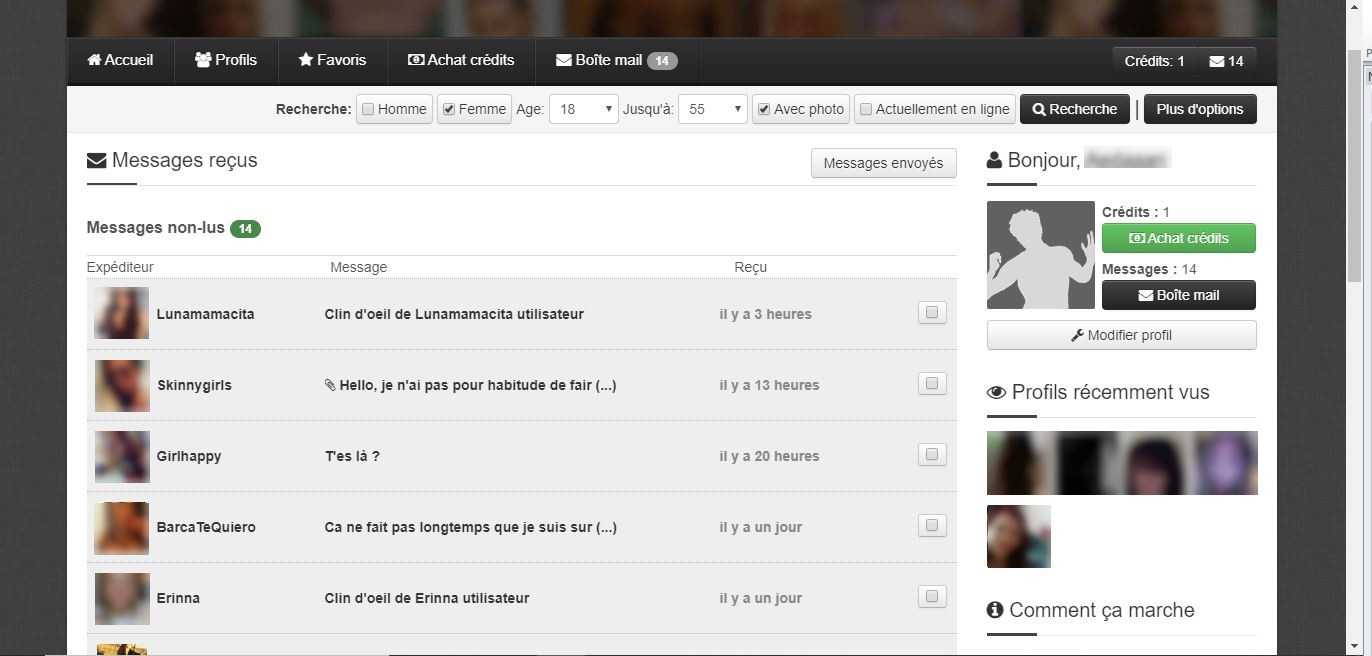 Quand je me suis inscrit sur ce site de rencontre, j’ai rapidement pris mes marques. Il est facile à prendre en main malgré qu’il y ait beaucoup d’information sur la page d’accueil. L’ambiance de ce site de rencontres sexy est conviviale, c’est agréable d’y passer du temps. J’ai assez rapidement reçu quelques messages, mais je me suis aussi amusé à en envoyer à des nanas qui avaient posté des profils. Le seul problème, c’est que ça ne filtre pas par localité, du coup c’était souvent des filles loin de chez moi. Et quand j’ai fait une recherche dans les 50 kilomètres à la ronde, je n’ai trouvé qu’une vingtaine de profils qui correspondaient. Autant dire que le tour est assez vite fait. Par contre j’ai pu en rencontrer 3 et les rendez-vous se sont tous très bien terminés.